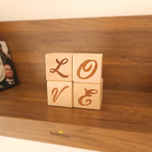 Lazer Yazılı Ahşap Küp (Dekoratif Obje) LOVE