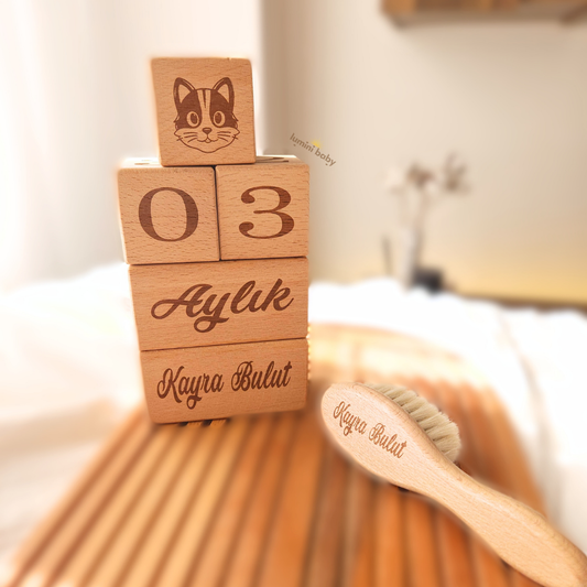 Ahşap Anı Küpü ve Fırça Set (Kişiye Özel)
