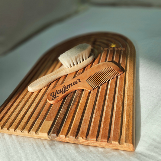 Doğal Keçi Kılı Bebek Saç Fırçası ve Tutmalı Tarak