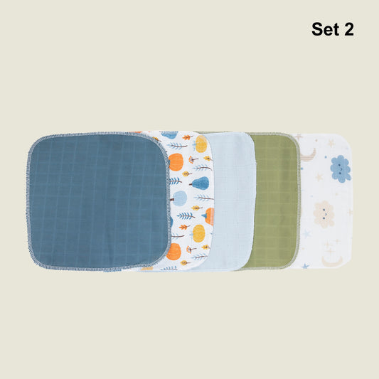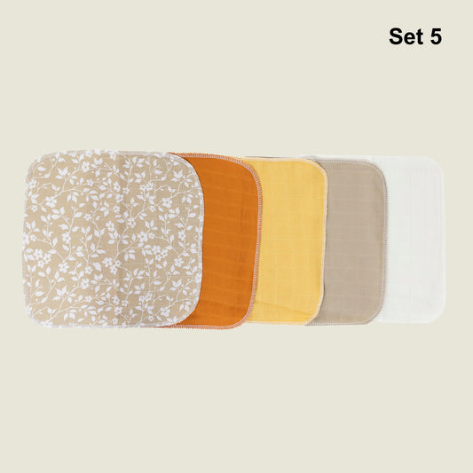 Set 5 Müslin Kumaş Ağız Mendili & Ter Bezi (Tek Katlı)
